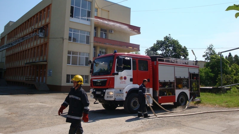 Степента на подготовка и готовността за реагиране при пожар на силите и средствата на Регионална дирекция „Пожарна безопасност и защита на населението” - Монтана провериха при учение. Ситуациите се разиграха в района на инфекциозния корпус на болницата в Монтана.