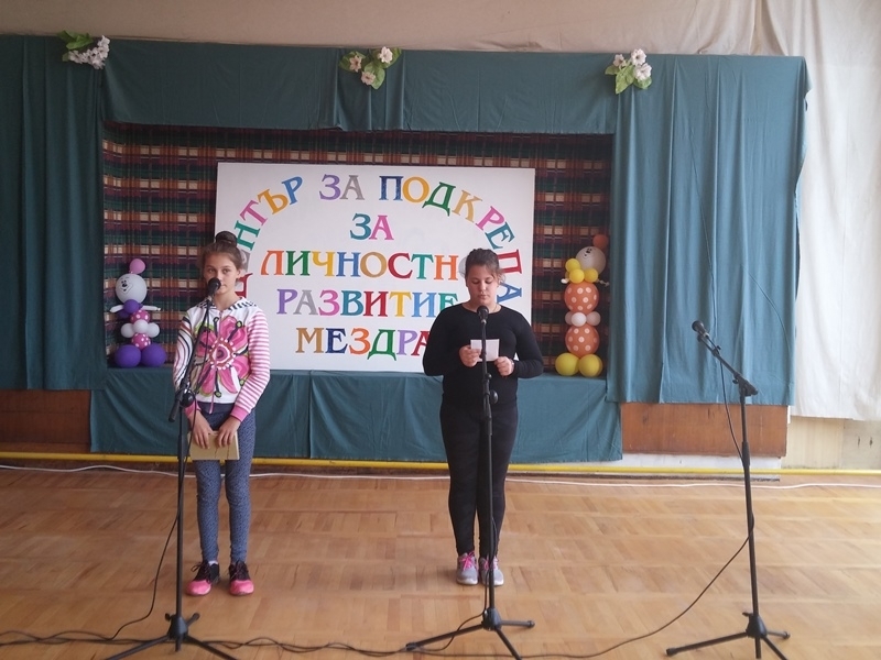 Малчуганите Рая и Нанси рецитираха част от есето „Моят огън“. Малката Йоана Лиловска изпълни песента „Нека всеки каже мога“. Новото попълнение в Центъра за подкрепа за личностно развитие Борислава Стоименова изпя вечния хит на Васил Найденов „Междучасие“.