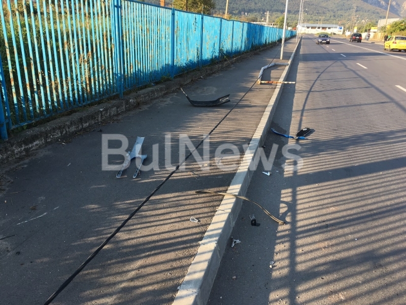 Инцидентът се е разминал без пострадали хора. Нанесени са обаче щети по предницата на буса. Стълбът, в който се е забил, е тотално потрошен, като по пътното платно са се разпилели части от лампата. Кабел, свързващ го с останалите стълбове, виси над тротоара и най-вероятно ще трябва да бъде отстранен от спeциализиран екип. Има и поражения по оградата на автокъщата.