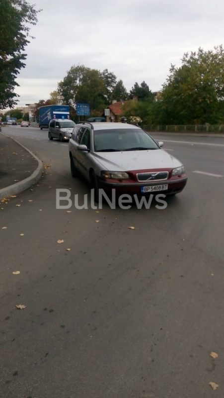 Снимките са направени преди минути на новоасфалтирания бул. „Васил Кънчов“ в града. На тях ясно се вижда как шофьор е зарязал раздрънканот си „Волво“ насред натоварения булевард. Още по-лошото е, че днес е петък и по традиция движението на автомобили там е по-натоварено. Положението се утежнява и от факта, че по-голямата част трафика на града е пренасочен през булеварда, заради затварянето за ремонт на централна улица.