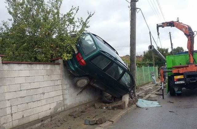 Шофьор без книжка заби кола между ограда и стълб /снимки/