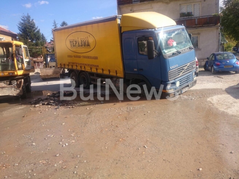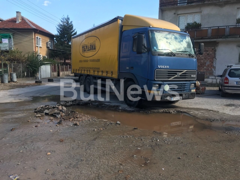 Дежа вю! Камион пропадна в огромен уличен кратер във Враца /снимки/