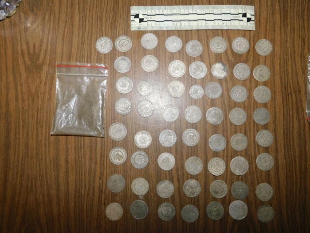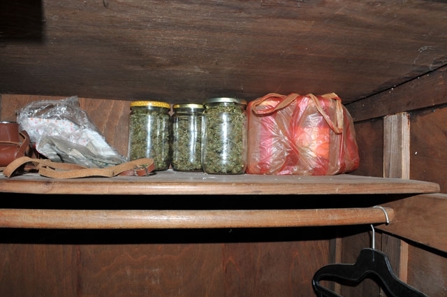 При извършенте процесуално-следствени действия разследващите открили и иззели 17 конопени растения с височина до 290 см, множество зелени стръкове и съцветия, 8 стъклени буркана с около 300 грама зелана листна маса, два плика със суха листна маса, електронна везна, както и препарати за растителна защита и торове – ползвани според първоначалните данни за отглеждане на растения от рода на конопа. При полевия наркотест тревата реагирала на канабис. Иззети били още 84 монети с различен диаметър и 96 предмета с различна форма и размери – всичките, носещи белези на археологически артефакти; 67 патрона с различен калибър; пушка с дървен приклад и патрон в цевта.