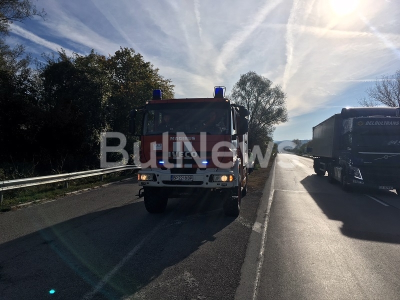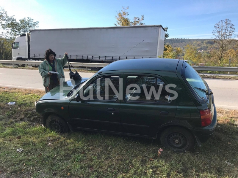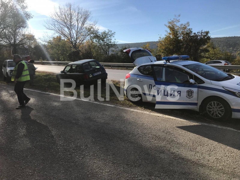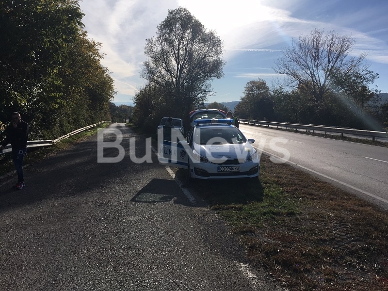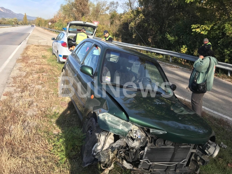 На местопроизшествието пристигнали екипи на полицията и пожарната. Колата, която е с размазана предница, е в тревна площ край пътя и не затруднява движението.