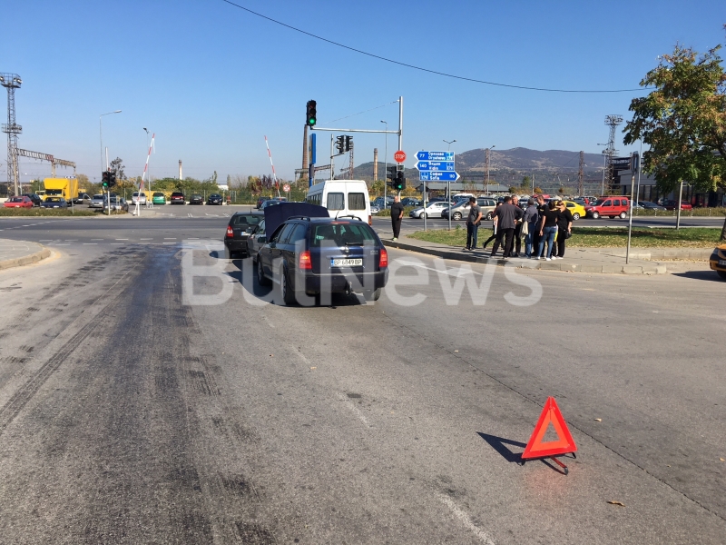 Движението в района на светофара на Автогарата в посока магазин Лидъл е затруднено и затова шофьорите трябва да проявят търпение при преминаването, тъй като трите пострадали автомобила все още са там.