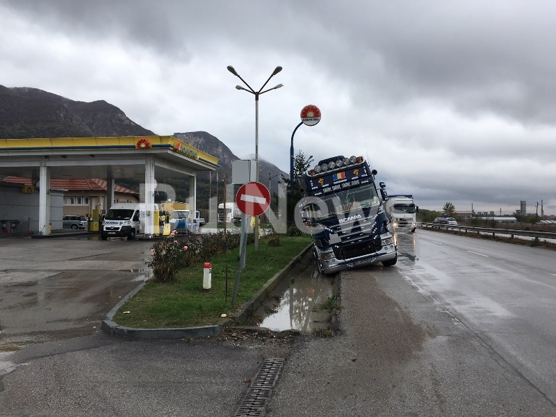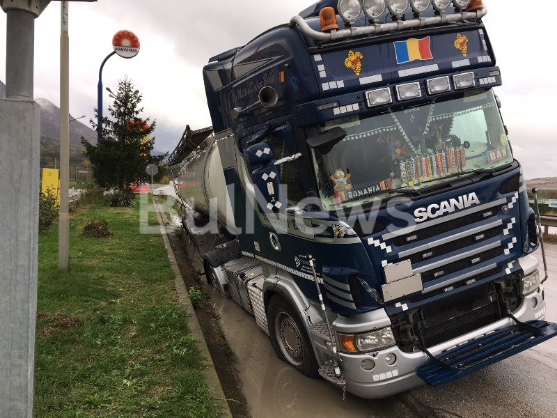 Нелеп инцидент! Румънски тираджия обърка скоростите и се катурна в канавка /снимки/