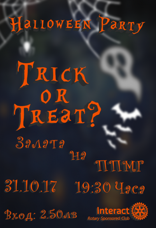 Този вторник от 19.30 ще се проведе ежегодното благотворително Хелуин парти в салона на Математическата гимназия. Организатори са младежите от Интеракт клуб, а партито обещава страшно шоу и стряскащи изненади. Гостите ще могат да се насладят на страхотна музика, живото изпълнение на рок група и танцови състави, ще могат да си направят невероятни снимки в специално обособен кът, да се почерпят с храна и напитки и да се забавляват гарантирано.