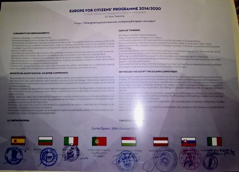 „Ние трябва да дадем гласност на идеите и инициативите, които ни обединяват в това начинание, на това което ни отличава и което ни различава. Този договор трябва да бъде повод за наша всеобща гордост“, сподели кметът на община Куртис Хавиер Каинцос.