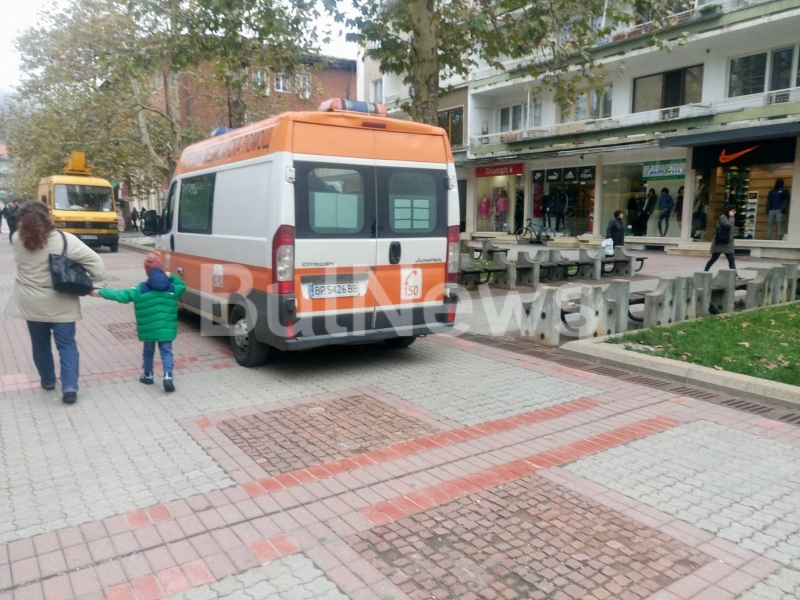Инцидент в центъра на Враца вдигна на крак екип на спешна помощ в града. Линейка с включени сирени прелетя по главната пешеходна улица, известна като Пробива, видя първо репортер на BulNews.bg.