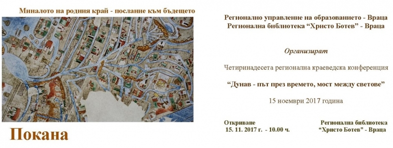 „Дунав – път през времето, мост между светове” е темата на XІV регионална краеведска конференция, организирана от Регионално управление на образованието – Враца и Регионална библиотека „Христо Ботев” – Враца. Форумът ще се проведе на 15 ноември от 10 часа в Обща читалня на библиотеката.