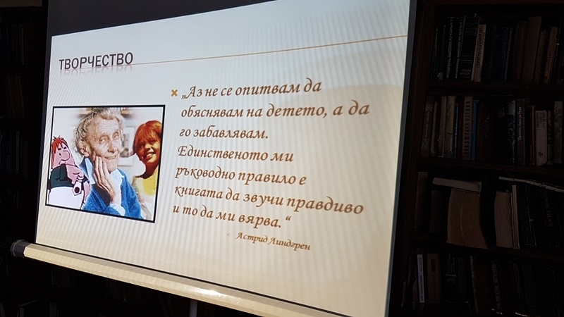 Главният библиотекар Павлина Русева показа презентация за биографията и творчеството на Астрид Линдгрен.