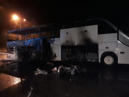 Автобус с туристи се запалил близо до София, полицаи спасили хората /снимки/