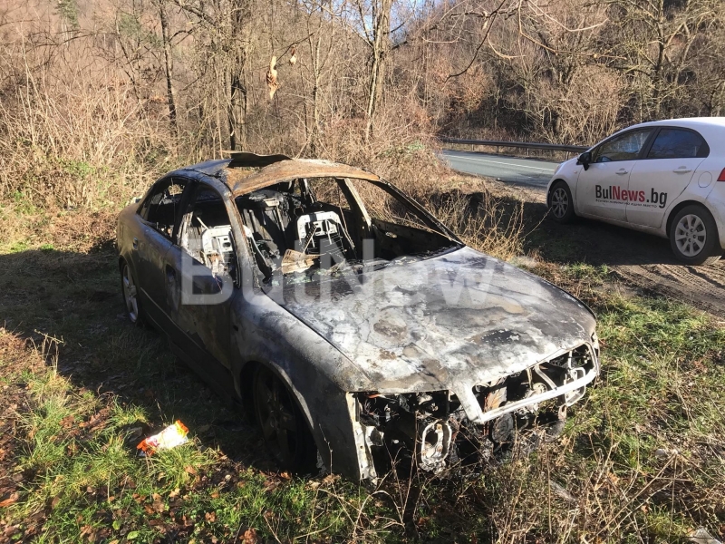Информационна агенция BulNews.bg се сдоби с ексклузивни снимки на колата, която горя вчера на международен път Е-79 между Мездра и Ботевград. „Ауди А4“ с врачанска регистрация е унищожено напълно от огъня.