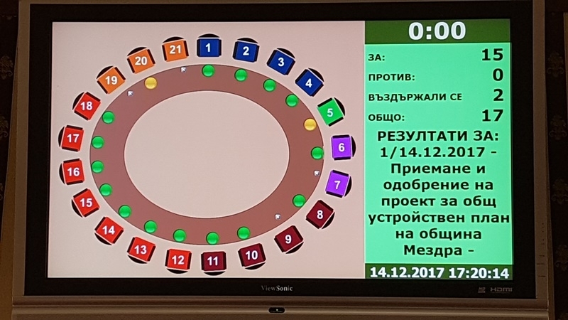 След проведено гласуване с 15 гласа „За”, нито един –„Против” и 2-ма- „Въздържал се” Общински съвет-Мездра одобри проекта за Общ устройствен план на Общината.