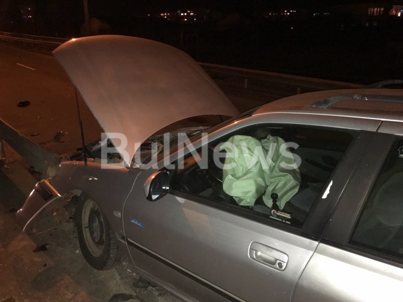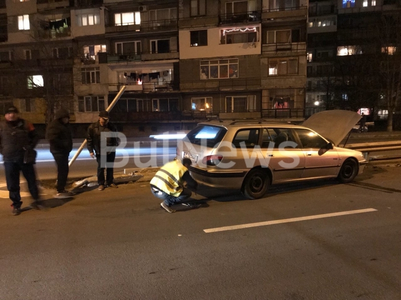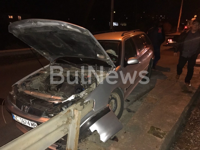 Лек автомобил „Пежо“ с софийска регистрация се е разбил с голяма скорост в мантинелата на отбивката от бул. “Васил Кънчов“ към ж.к. „Дъбника“. Ударът е бил толкова силен, че част от еластичната преграда е пронизала колата и е влязла като огромен шиш в купето.