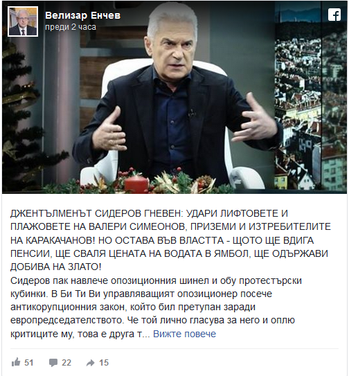 Велизар Енчев: Волен Сидеров удари лифтовете и плажовете на Симеонов и приземи изтребителите на Каракачанов
