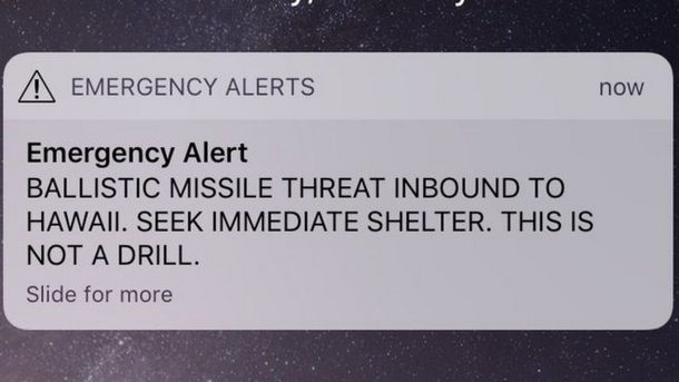 Тревогата била подадена от служител в местния клон на управлението за извънредни ситуации, който натиснал погрешен бутон. Около 8 часа сутринта местно време до мобилните телефони на хората било пратено съобщението: "Заплаха от балистична ракета, идваща към Хавай. Потърсете незабавно убежище. Това не е учение".