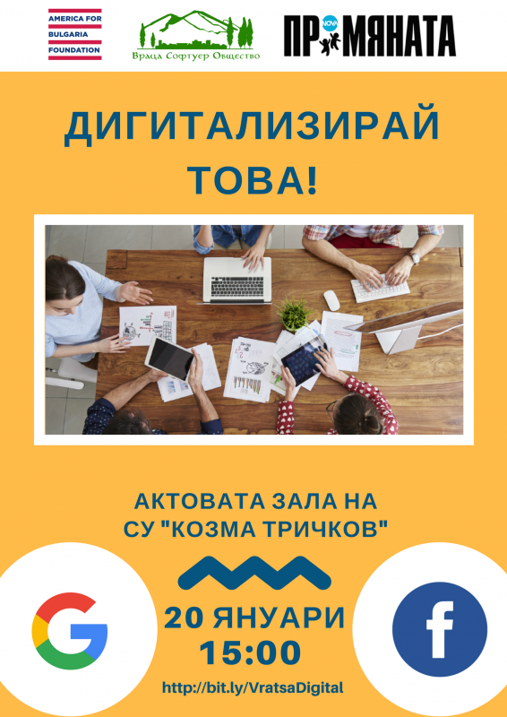Ще бъде представен и предстоящия безплатен 4-месечен курс по Дигитален маркетинг на Враца софтуер общество. Той започва в края на февруари и е предназначен както за ученици в гимназия, така и за работещи и безработни.
