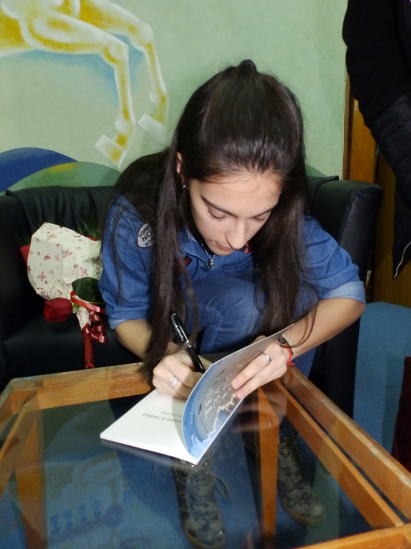 Пред многобройна публика в Регионална библиотека „Гео Милев” – гр. Монтана, двадесетгодишната Любомира Емилова представи първата си стихосбирка „Терзания в синьо”. Водещ на срещата бе Сибил Бойчев – програмист уеб сайтове в библиотеката.