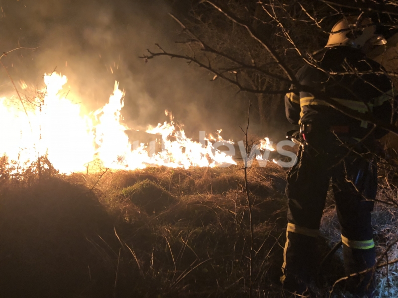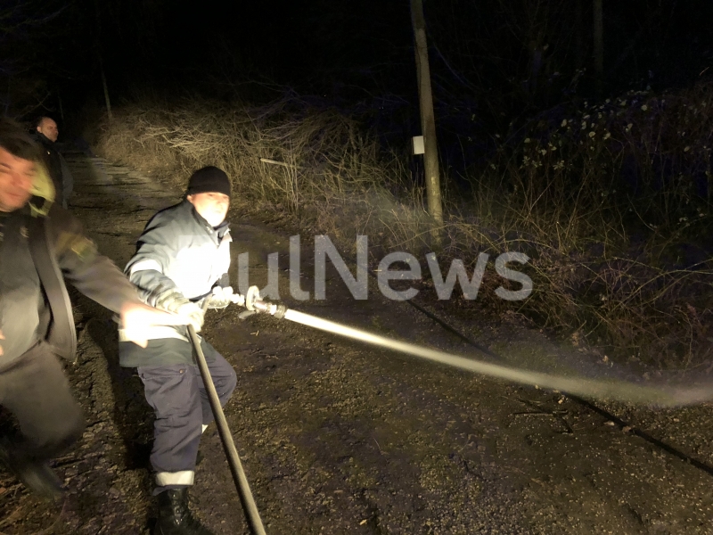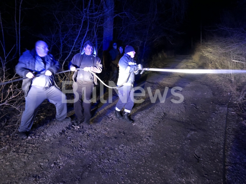 Пожарникарите, подпомагани от доброволци, сред които и репортер на медията ни, полагат усилия огънят да не захапе къщата. Около нея има много кабели и затова се чака екип на ЧЕЗ, който да изключи захранването на имота с електричество.