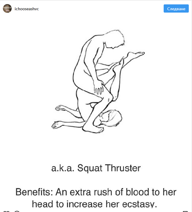 „Тайната“ на тази поза е това, че кръвта слиза в главата на жената, което носи усещането за много мощен и незабравим оргазъм.
