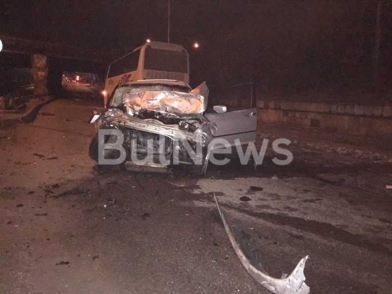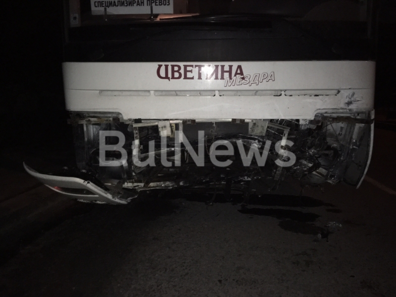 Лек автомобил „БМВ“ с врачанска регистрация се е ударил челно в автобус на бул. „Мито Орозов“ недалеч от подлеза. Сблъсъкът е бил толкова свиреп, че предната част на колата е напълно размазана. В радиус от поне 30 метра има разпилени части от нея. Асфалтът около лекия автомобил е залят с изтекло от него масло. Немското возило било управлявано от около 20-годишно момче, което е извадено в тежко състояние от шофьора на автобуса и пристигналите спешни медици. Още на място му е поставена шина на врата и с пуснати сирени е закарано в болницата за допълнителни изследвания.