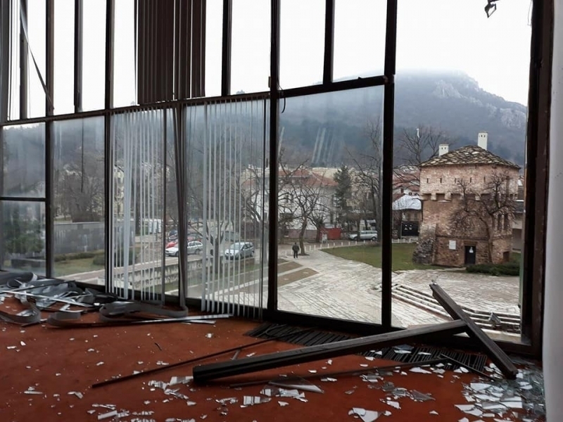 Има доста сериозни повреди по фасадата, по стъклената част, дограмата, която е изскубана, деформирана. Трябва да се укрепва, тъй като е невъзможно да се смени цялата наново. Твърде скъпо е. Нарушено е покривното покритие. Започнаха течове на много места. Обшивките са съборени.
