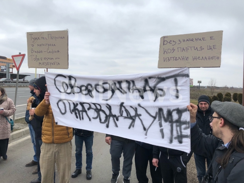 Днес се проведе поредният протест на видинчани с искане за изграждане на магистрала Видин - София и тунел под Петрохан. За първи път той се проведе и на входа на София при магазин „Джъмбо“.