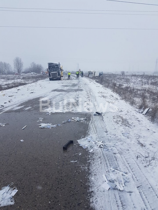 Появиха се първи снимки от ужасяващата катастрофа, която в късния следобед днес блокира околовръстния път на Видин. Заради тежкия инцидент ТИР-те бяха пропускани през града за Дунав мост 2.