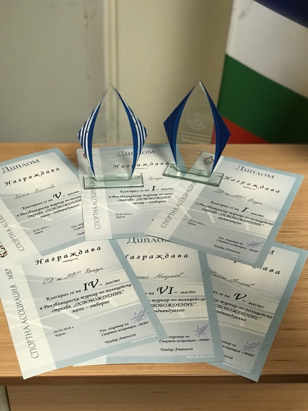 Врачанските стрелци затвърждават мястото си сред най-добрите в полицейската стрелба с пистолет. Мъжкият отбор в състав Ивайло Флоров, Николай Милушев и Румен Николов завоюва първото място и взе най- красивия от кристалните плакети, осигурени от организаторите – ОД на МВР Бургас. Женският отбор в състав Катя Василева и Ани Цанова останаха на секунди от призовата тройка- на четвърто място. Така в комплексното отборно класиране врачани безапелационно спечелиха първото място.