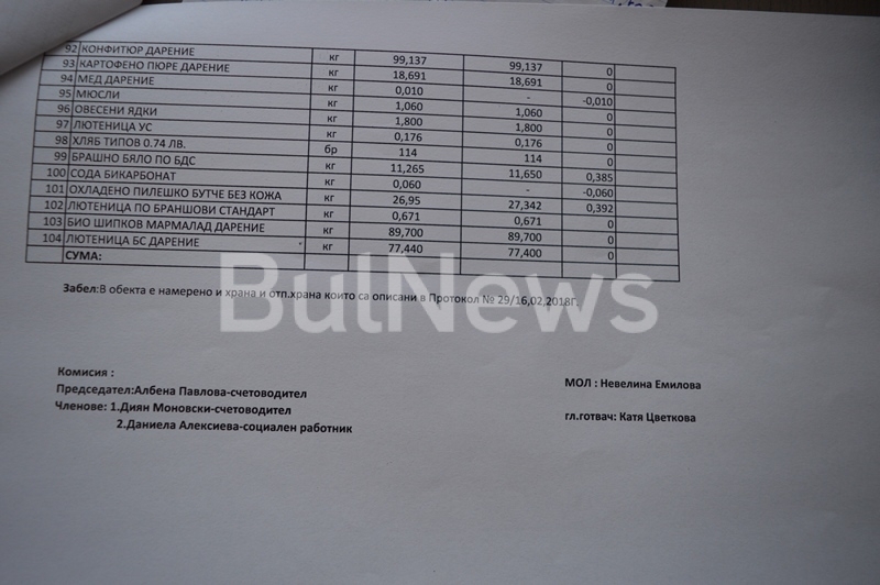 По думите им майката на Невелина редовно се храни в стола. Те имали изрично разпореждане за отпадъчната храна, която трябва да събират за друг нейн роднина. Случвало се е самата управителка да готви в кухните за външни хора. Жените също така обвиняват Димитрова, че подменя сиренето, което трябва да е по БДС, тъй като е за деца с увреждания от дневния център „Зорница“, но било сменяно с обикновено. Според служителките, в складовите наличности от хранителни продукти има разминавания в количествата.