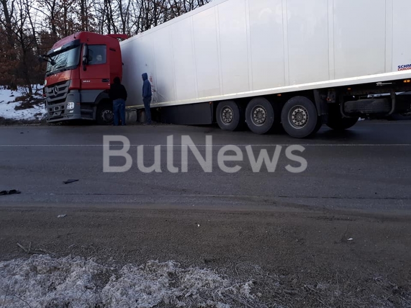 Инцидентът е станал малко преди 7 часа тази сутрин край монтанското село Смоляновци. Трите тежкотоварни камиони се движели в посока към Дунав мост 2, когато се нанизали един в друг.