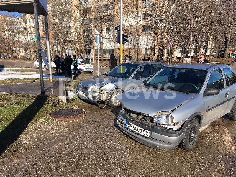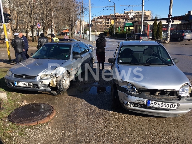 Инцидентът се е случил на светофара при кафене „The Face”. Сблъскали са се лека кола „Опел Корса“, шофиран от млада дама, и автомобил „Хонда“.