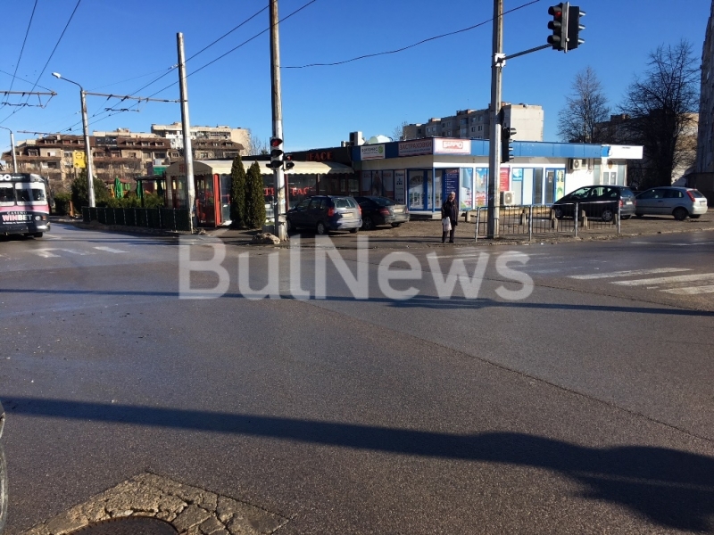 Жената се движела откъм депото на тролеите, а мъжът идвал от пазарчето. До удара се стигнало, след като една от колите бързала да премине на жълт светофар, а другата не изчакала да светне зелено.