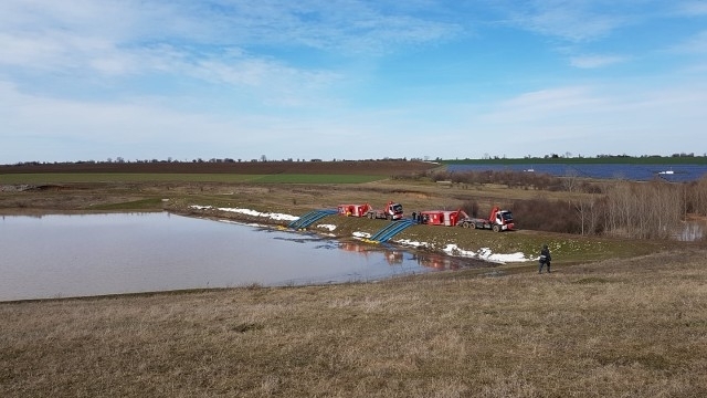 Модул с три мощни хидропомпи е пренасочен от язовир "Рогозен 1" към Брегово за отводняване на залетите територии. Директорът на Регионалната дирекция "Пожарна безопасност и защита на населението" във Видин комисар Станислав Генчев и областният управител Албена Георгиева са на място в граничния град от рано сутринта, за да проследят ситуацията в момента. "Пуснахме помпата и вече работи. Изпомпват се подпочвените води между дигата и населеното място. Видимо вече водата спада. Няма опасност за населението", съобщи комисар Генчев. Обявеното бедствено положение в Брегово остава в сила. Прииждащи от Сърбия води, наводниха над 6 хиляди декара обработваема земя там. Притесненията на жителите са свързани и с чистотата на питейната вода, но от Регионалната здравна инспекция увериха, че е годна за пиене, а съставът ѝ се следи.