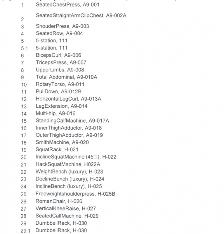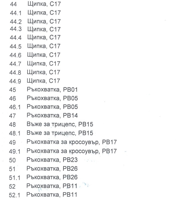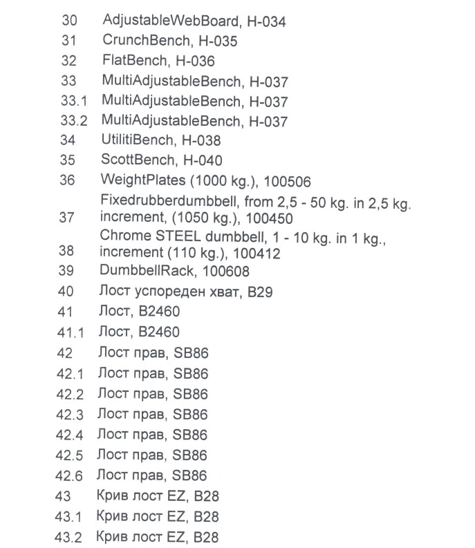 На тезгяха са сложени 90 различни фитнес уреди и тренажори. Пазарната оценка на вещите е 107 416.80 лева. Началната цена, от която започва надаването, е 85 933.44 лева с ДДС.
