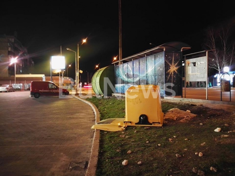 Вятърът обърна десетки контейнери за смет, има и паднали дървета. Особено опасна е ситуацията около пощата в ж.к. „Дъбника“, където има скъсан кабел, за който не е ясно дали е комуникационен или силов. До отстраняването му е препоръчително да не бъдат правени опити от минаващи хора за премахването му.