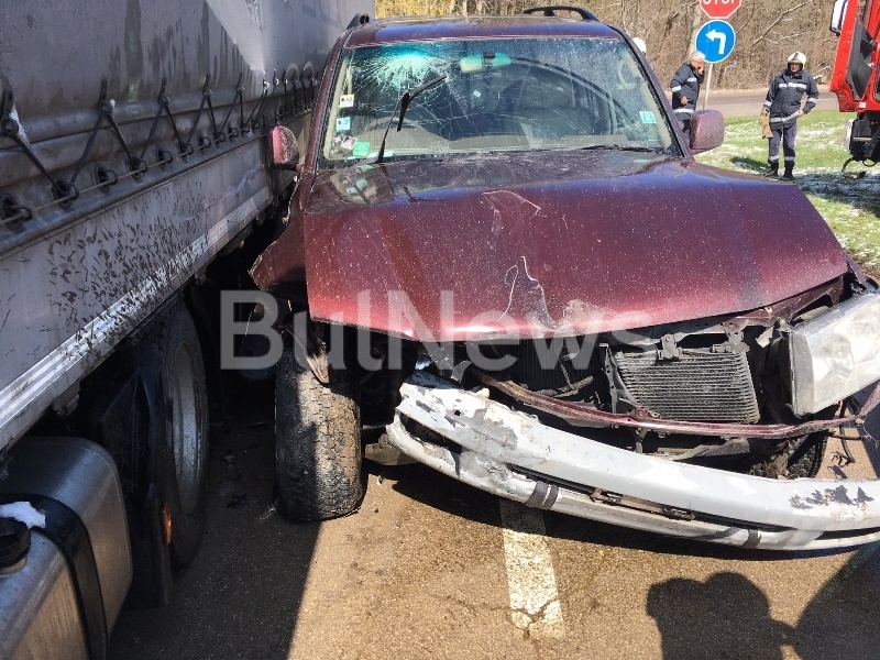 Автомобилът се е врязал в резервоара на тира, който като по чудо не е избухнал.