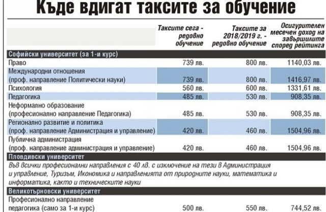 16 университета вдигат част от таксите си за обучение от академичната 2018/2019 г. Някои правят тази промяна само за 1-и курс, в 17 пък няма да има промяна.