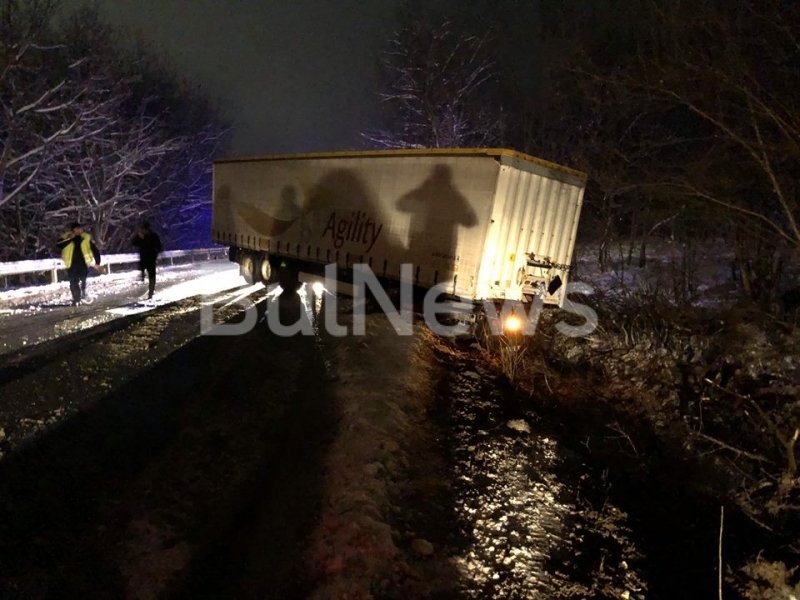 Катастрофа с български ТИР блокира международния път Е-79 край Враца, видя само репортер на агенция BulNews.bg.