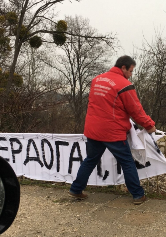 На друг плакат е написано: "Бойко, не сме троянски кон на Ердоган!"