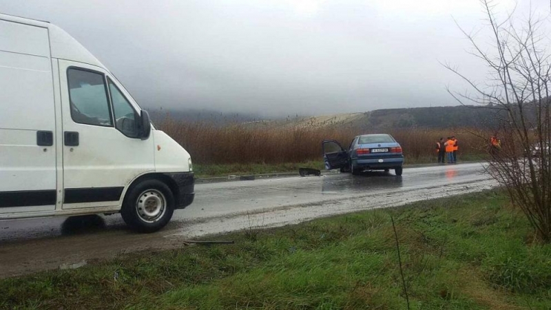Ударил се в идващия насрещно товарен автомобил „Волво“ с немска регистрация.