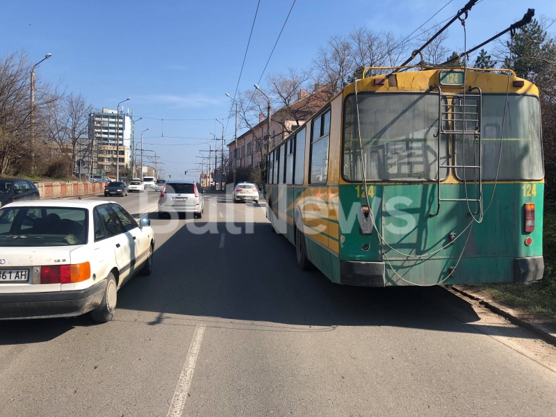 Шофьорът на автомобила обяснил, че бил засечен от друга кола заради което не успял да спре навреме и се натресъл в тролейбуса. При инцидента няма пострадали, а щетите по возилата не са големи.