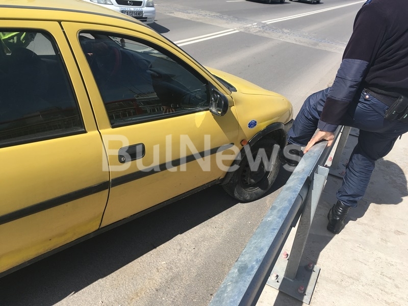 Водачът се е разминал невредим при удара. Освен откачената гума, щетите по колата също са минимални.
