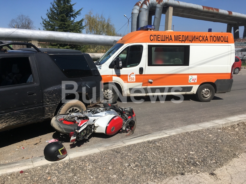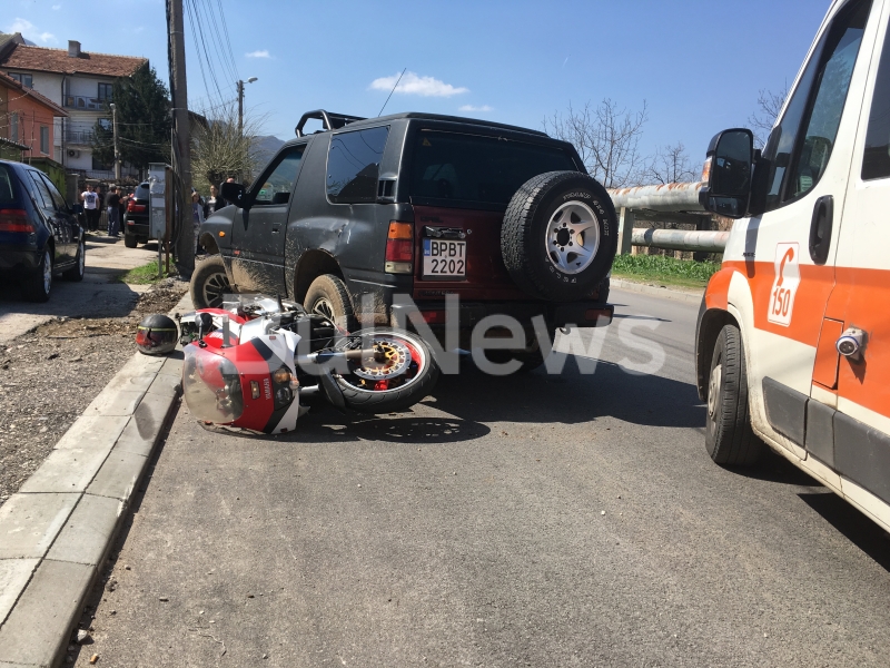 Мотоциклет с марка "Ямаха" се е ударил в джип "Опел Фронтера" с врачанска регистрация на ул. „Георги Апостолов“. Пострадал е мотористът - 46-годишният Димитър от Враца. Той е излязъл с висока скорост от района на ж.к. "Младост" и е потеглил в посока центъра на Враца.