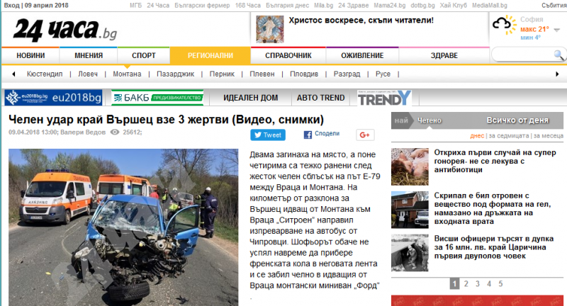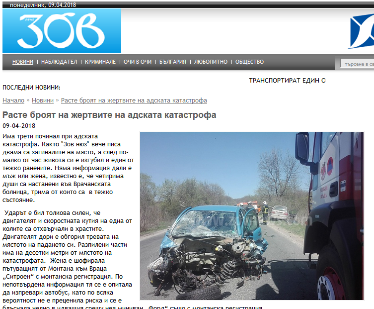 Вижте кои медии пуснаха фалшивата новина за трети загинал във вчерашната катастрофа край Враца /доказателства/