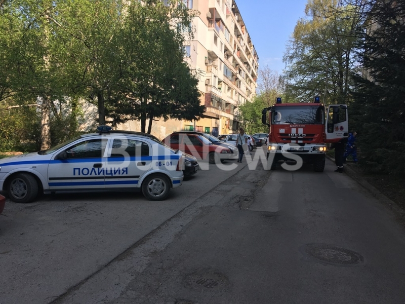 Трагичната сцена се разиграва в момента пред вход Г на блок „Найден Геров“ 10, над автогарата. Пред сградата са спрели пожарна, патрулка и специализиран химически автомобил на гражданска защита.