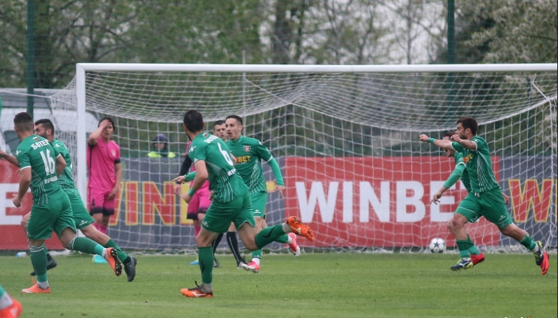 Преди това домакините стартираха по-силно, като опитаха да наложат натиск, но хубав удар от въздуха на Божидар Кацаров мина над гредата в 7-ата минута. Две минути по-късно Деян Иванов беше на път да си отбележи автогол с глава, а след това меле в наказателното поле на гостите беше предотвратено.