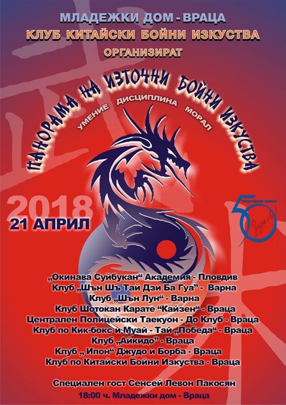 На 21 април 2018 година от 17:00ч. в град Враца ще се проведе Шеста Панорама на източни бойни изкуства, организирана от Младежки дом – Враца и Клуб китайски бойни изкуства.