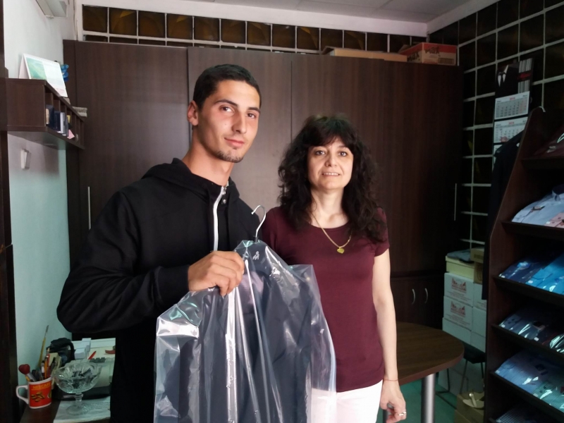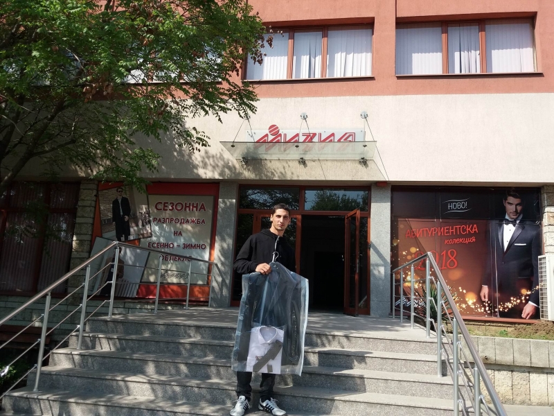 С подкрепата на Христофор Дочев, собственик на завод "Мизия 96" АД- град Плевен и верига магазини за обувки "Мат Стар", днес Тихомир лично избра костюм, риза, вратовръзка и обувки, с които ще отиде на една от най-важните вечери в живота си. Абитуриентският бал на момчето е на 29.05.2018г. в гр. Враца.
